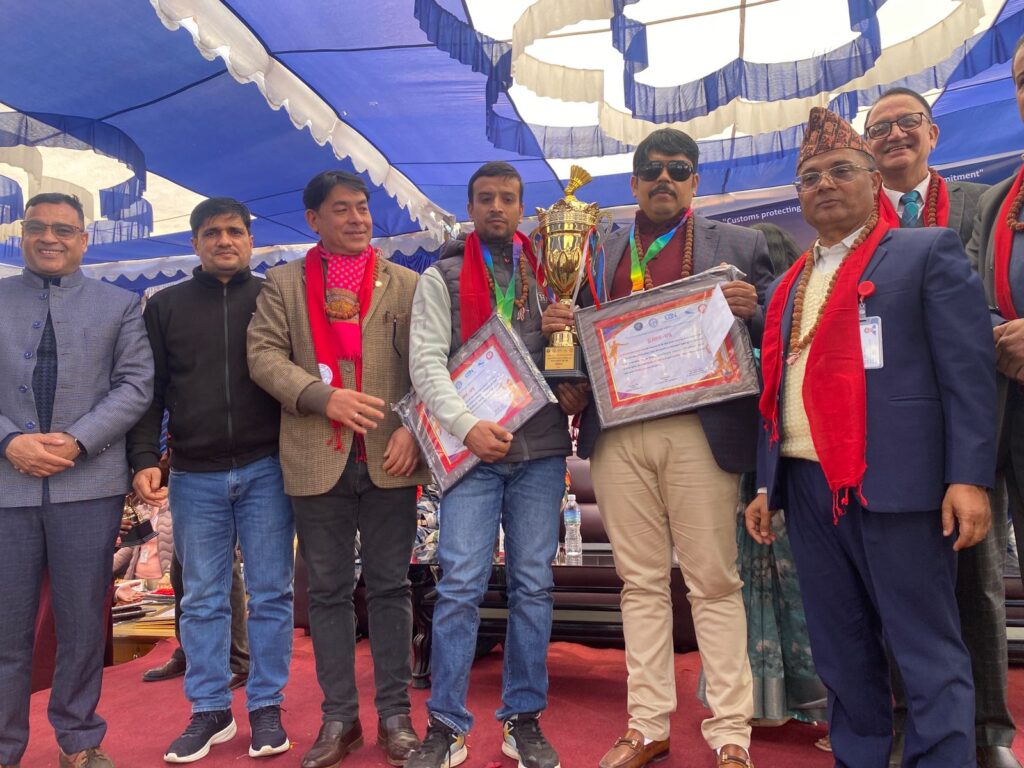 कार्यक्रम अन्तर्गत आयोजित ब्याडमिन्टन प्रतियोगितामा द्वितीय स्थान हासिल गर्ने नेपाल कुरियर सेवा संघका खेलाडीहरू — खोटराज सुबेदी “माधव” र गुरुदेव सुबेदी — लाई त्रि.वि. भन्सारद्वारा सम्मानपत्र, पदक तथा नगद पुरस्कारसहित सम्मान प्रदान गरिएको छ।